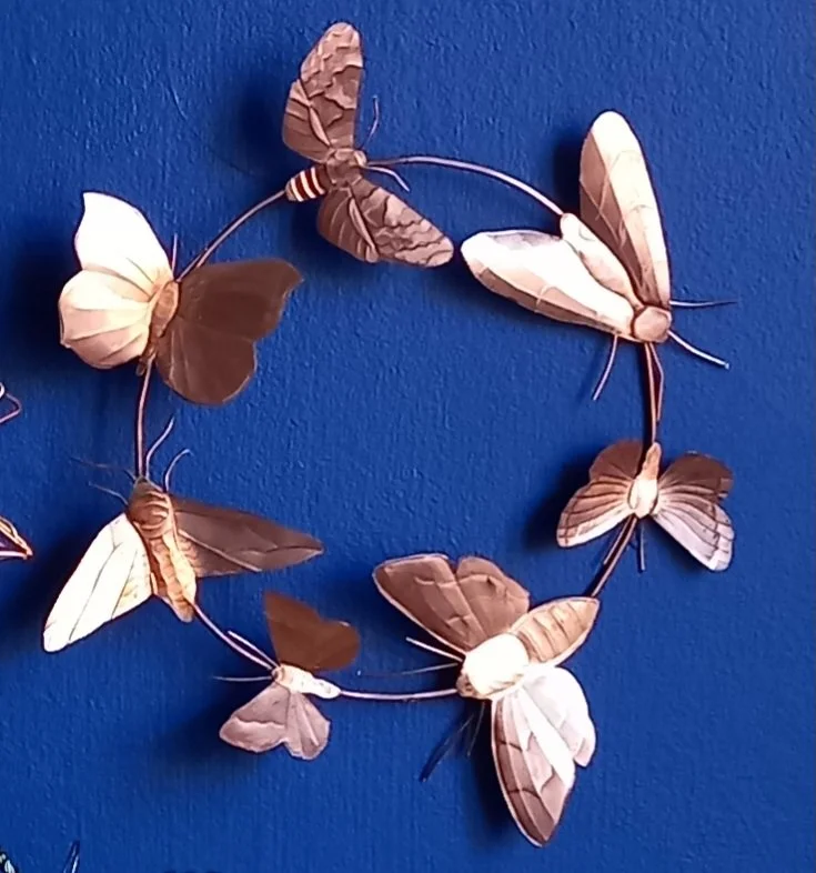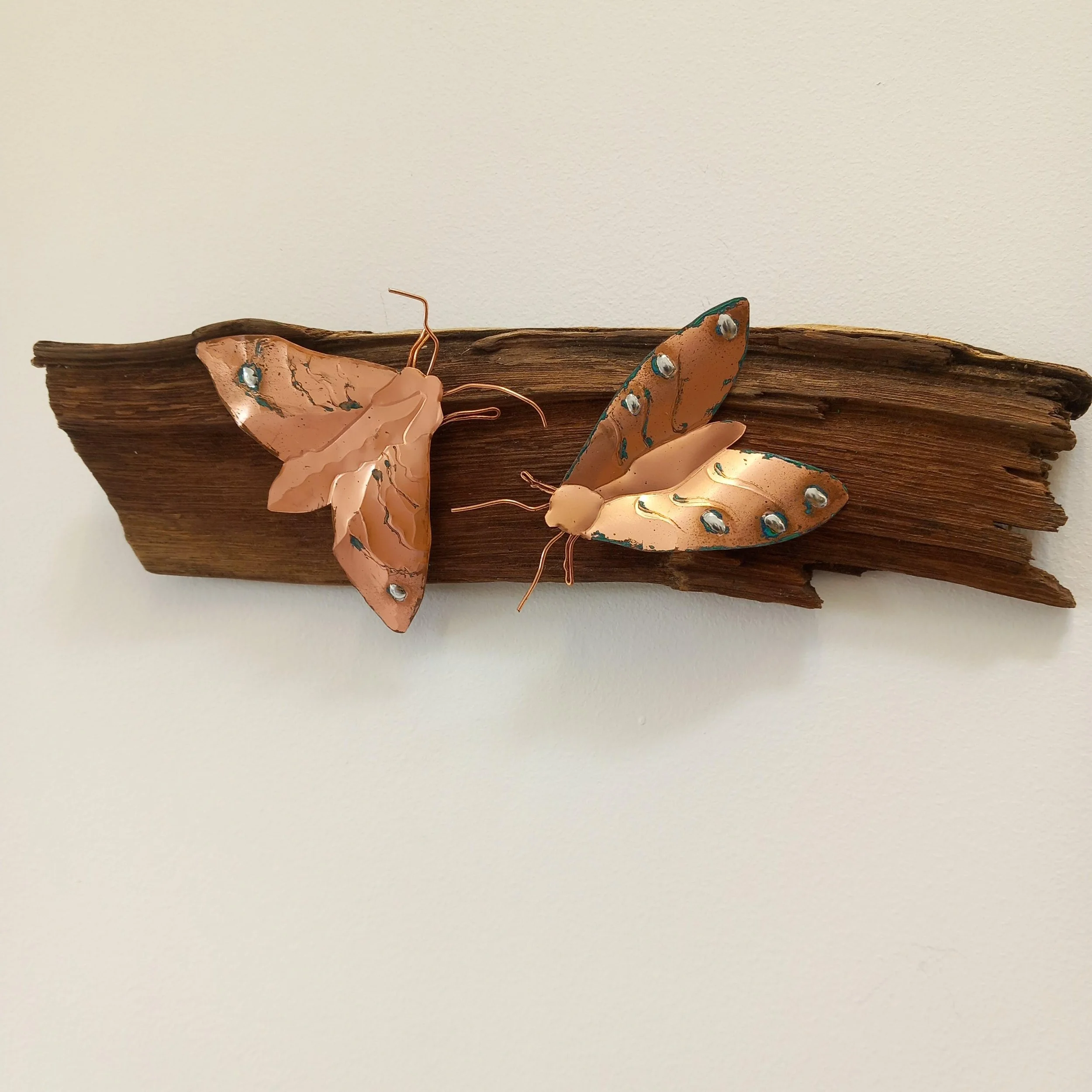 Moth on wood Copper & wood 25x10x4cm