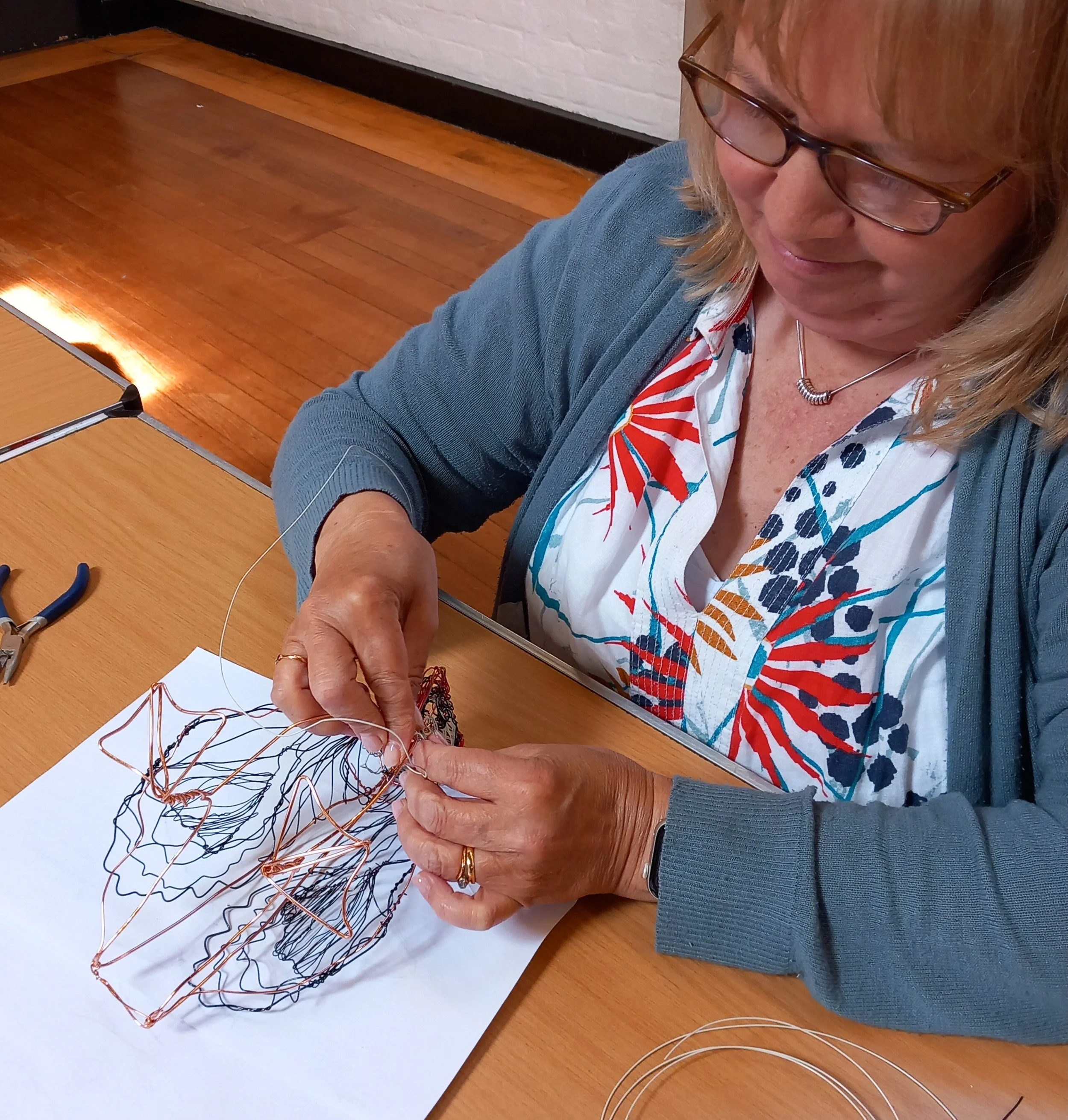 Flora has been taking Drawing with Wire sculpture workshops for over 20 years. She teaches regularly in Hampshire, West Berkshire and Surrey, click on the links